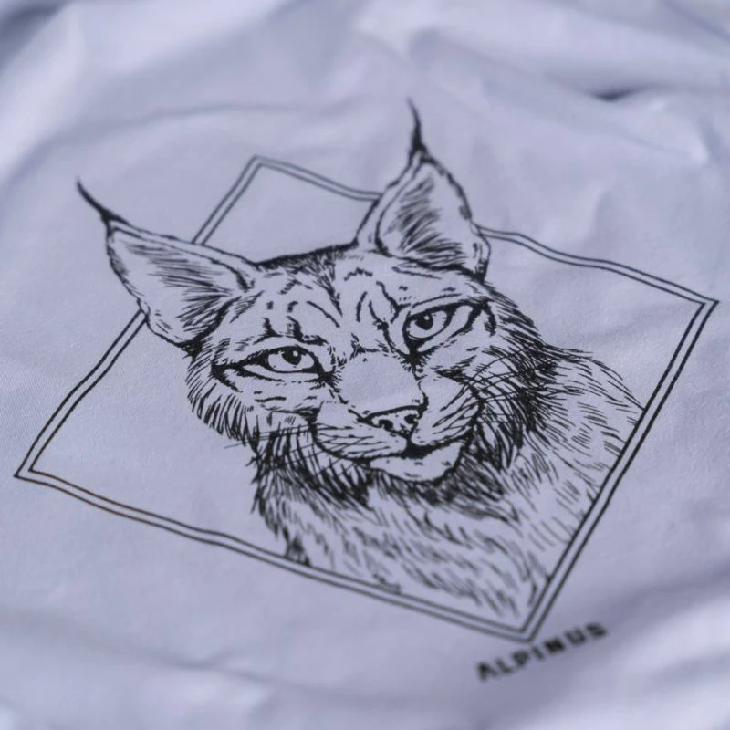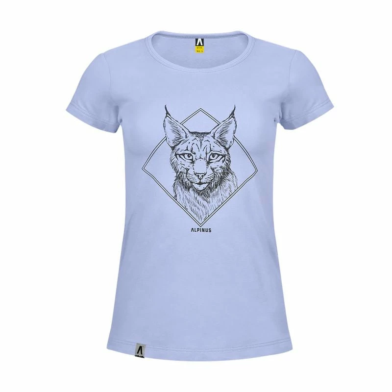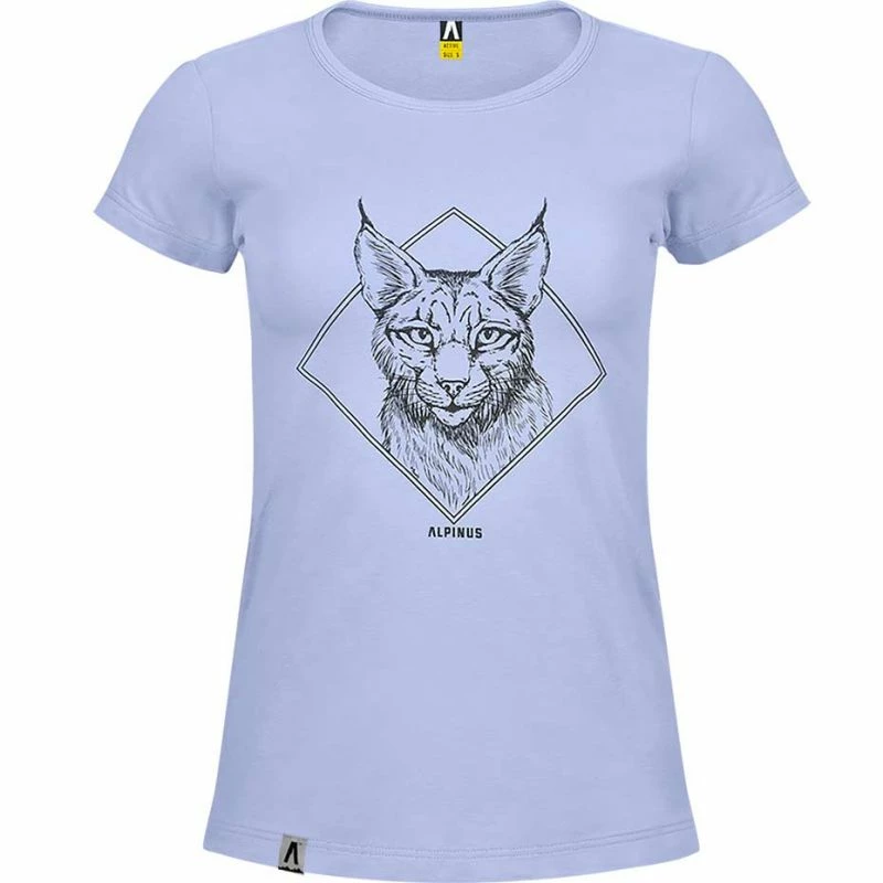- The lavender Dinara t-shirt with a lynx image subtly emphasizes respect for nature and love for animals. The outdoor theme can complement both your travel and everyday wardrobe.