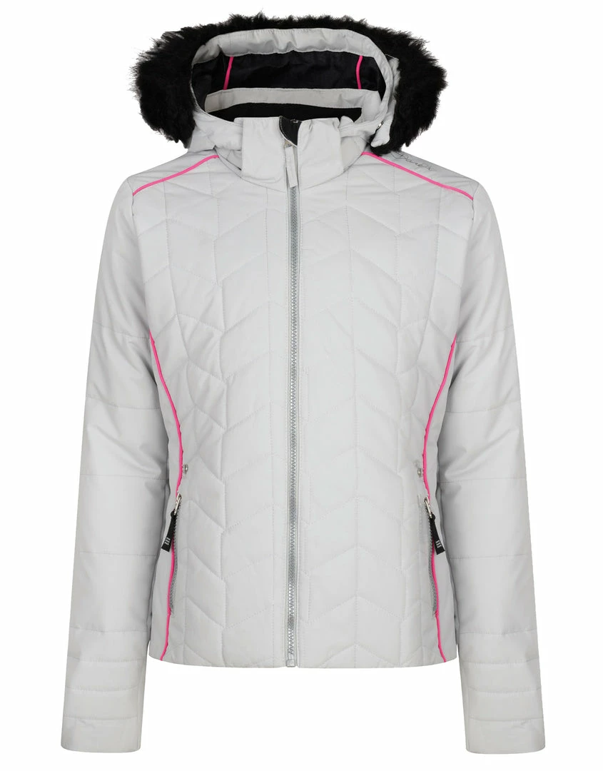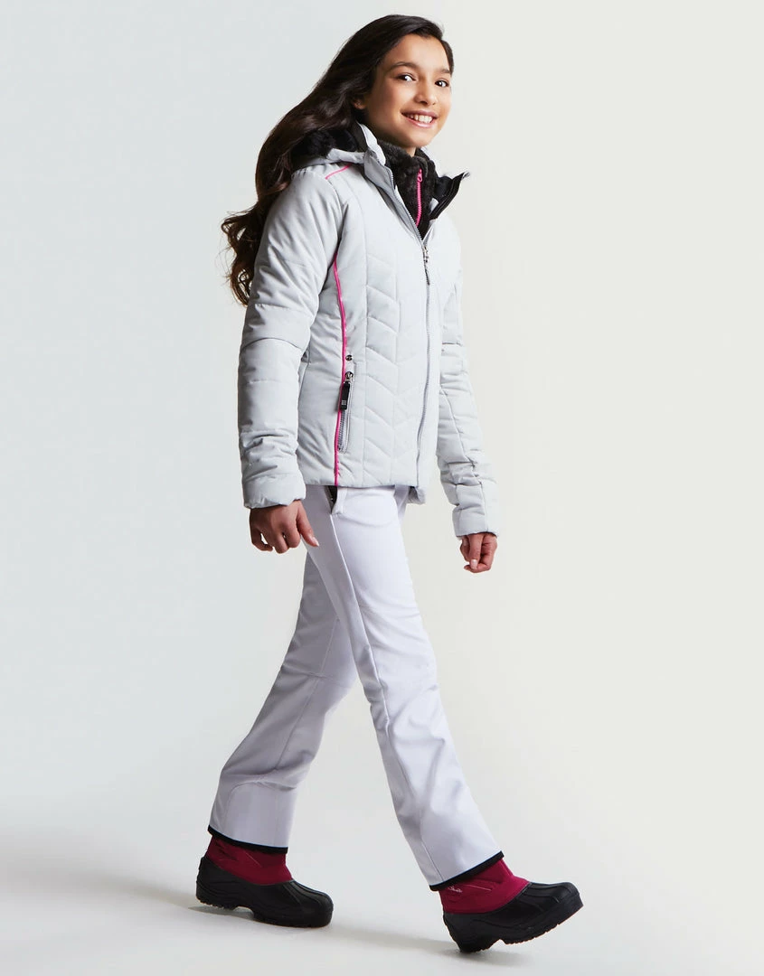 The Girls Prodigal Jacket from Dare2B is perfect for new skiers and mini thrill junkies alike, with a waterproof and breathable material that protects them from the snow without overheating. The high loft insulation traps in plenty of warmth, and the smooth quilted lining adds a little extra comfort and luxury. With a fixed snowskirt, stretch cuffs, and critically taped seams, this jacket offers a great defence against the elements for little skiers of all abilities.