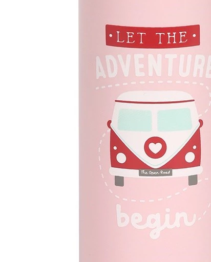 This metal drinking bottle will keep one hydrated in style with its cheerful pastel colours and retro campervan design. ‘Let the Adventure Begin’ text will be popular with those who love the freedom of the road. Screw top and durable keychain attachment for clipping to bags and backpacks with ease.