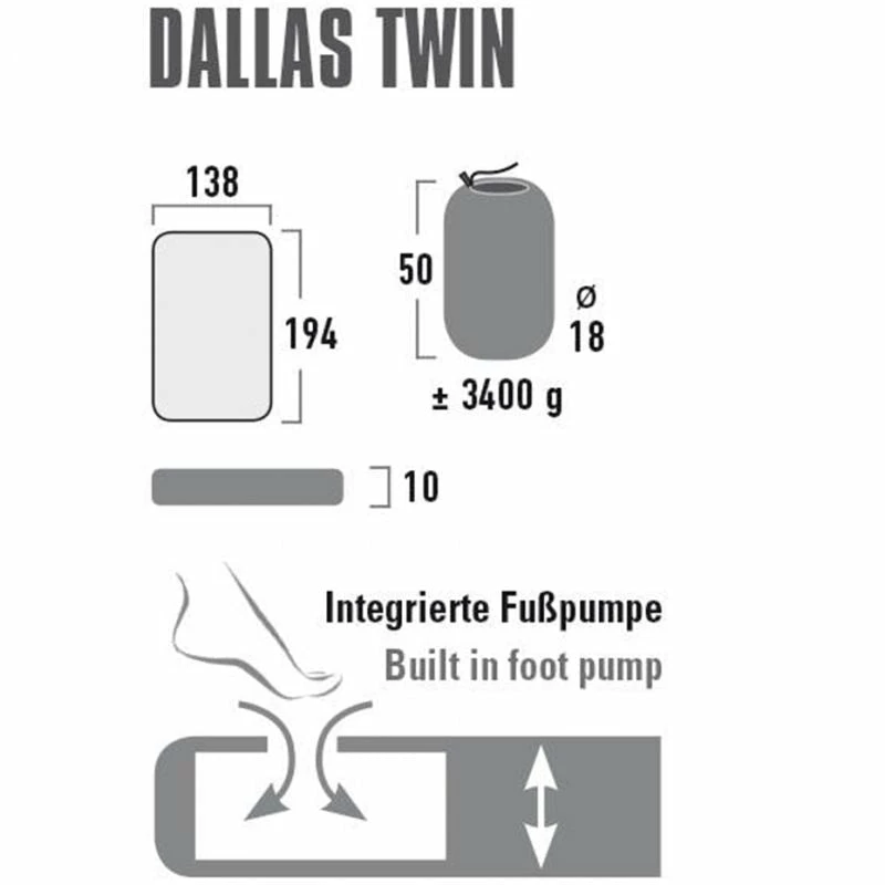 Double Dallas mattress from High Peak company equipped with 23 horizontal air chambers. It is made of high quality, non-slip brushed polyester fabric. An integrated foot pump allows the mattress to be filled with air in a moment. The single mattress has an oversized flap valve.