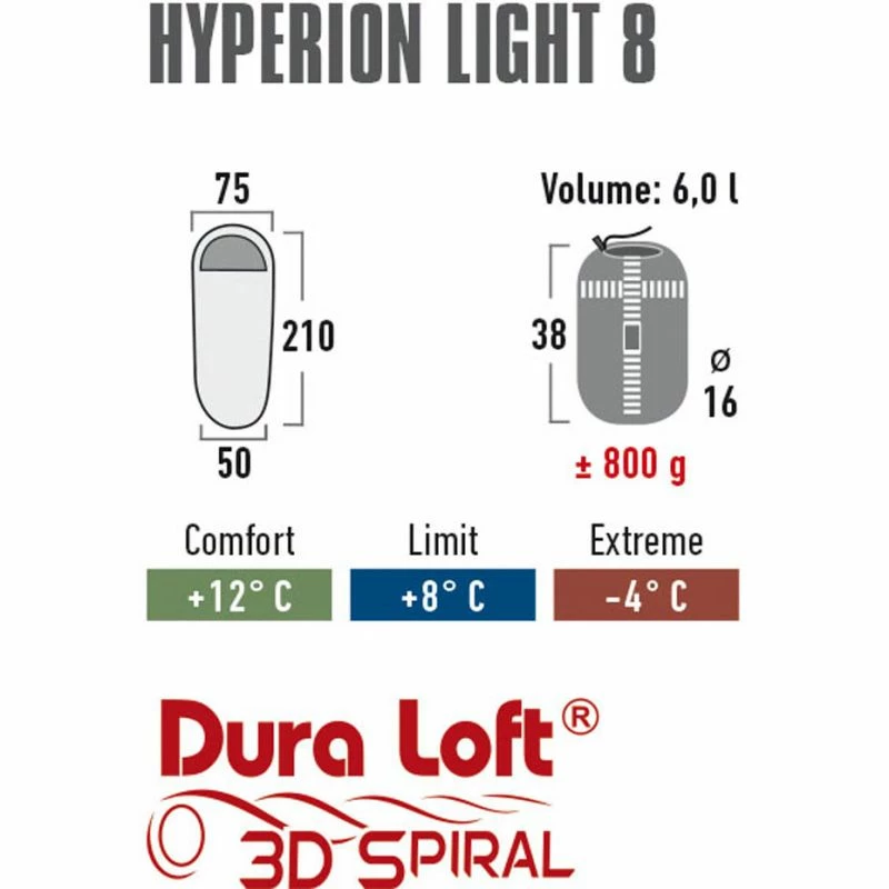 The High Peak sleeping bag will be perfect for various trips and spending time outdoors. It guarantees good thermal insulation. Mummy type construction. Easy to clean material. Dura Loft® technology with spiral fibers maintains an optimal temperature.