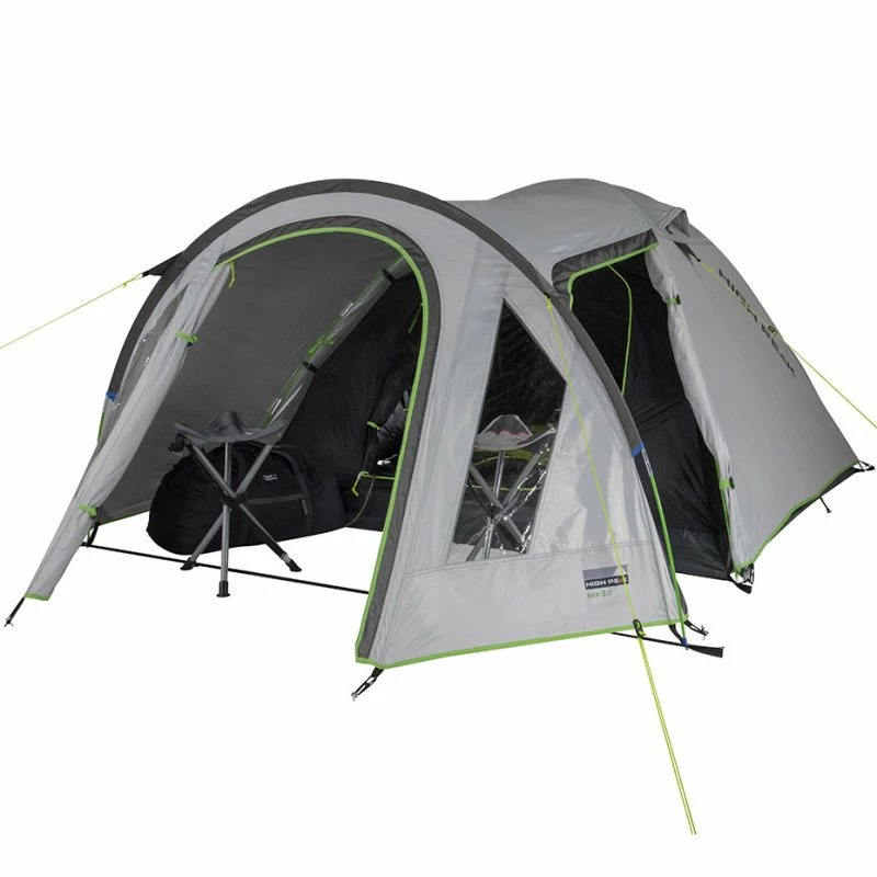 The Kira tent for 3 people from the High Peak company is equipped with two entrances – front and side. Vents. The spacious vestibule will work as a kitchen or utility room. The entrance is equipped with a mosquito net. Laminated seams and 3000 mm water resistance guarantee very good protection against rain. Two-coat. Vario Vent Control technology keeps the air inside the tent fresh. Lamp holder in the ceiling.