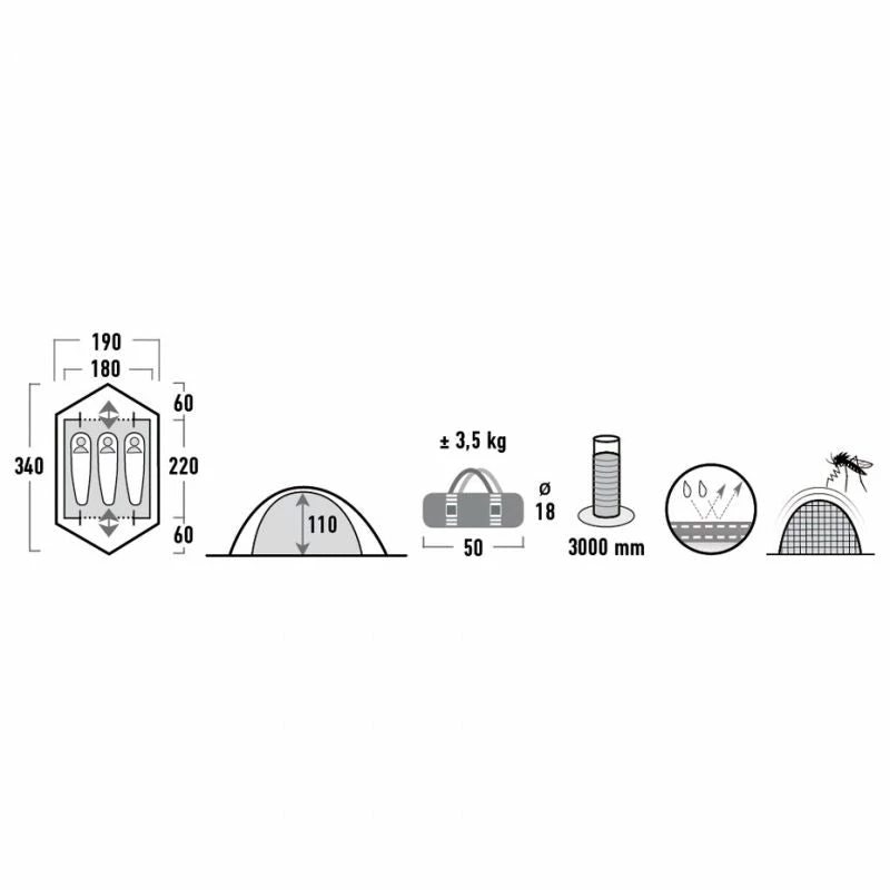 The entrance is equipped with a mosquito net that protects against annoying insects. Laminated seams and water resistance 3000mm water column guarantees very good protection against rain. The low weight and size of the packaging make Woodpecker an excellent companion for pedestrians and bicycle groups.
