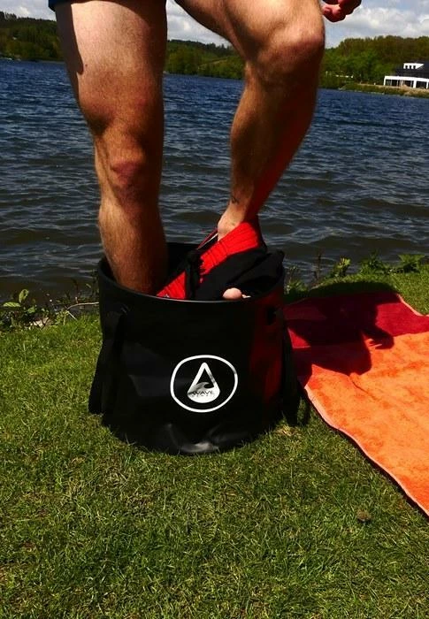 The perfect companion for the beach, swimming lake, leisure pool. Very stable, waterproof material with practical handles. In the optimal size with 35 cm diameter and 30 cm height. Thanks to the stabilizer in the upper edge and the robust material, it always keeps its shape. Can be folded up nicely for transport without content. Can also be used as a changing mat, mobile washbasin and sink, beverage cooler or fishing bucket.