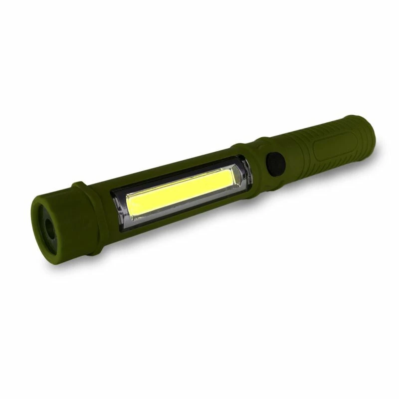 The 2-in-1 handheld flashlight is a practical, pocket-size lamp similar to a pen. The main function is the flashlight that shines with 120 lumens up to 10 hours. With the button you can change the light source to side that shines along the length of the flashlight. Thanks to this, the lamp can be used in the garage, during evening meetings or at the campsite. The flashlight has a magnet on the bottom, so you can attach it to a specific place and illuminate the room without using your hands. An additional belt clip or pocket means that you can also attach it to your clothes or backpack, and when you are hiking, you can illuminate your path without holding the flashlight in your hand.