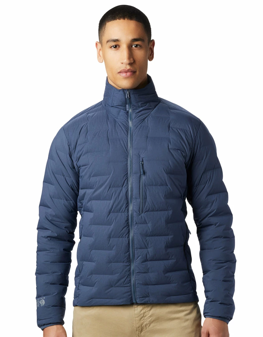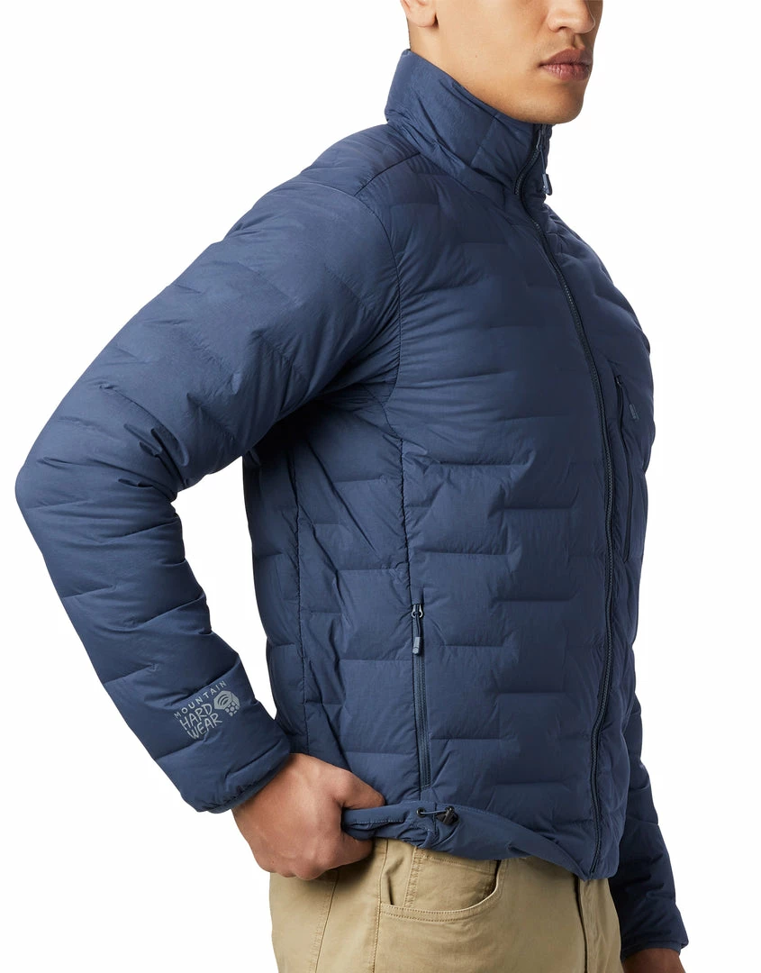 The Mens Super DS Stretch Down Jacket from Mountain Hardwear is the ideal down jacket: lightweight insulation that is mobile, durable, and warm. Its stretch-baffle construction represents a new movement in down technology: the first puffy to weave face, back and baffles from a single fabric. With no bulky glues or delicate stitches, the woven baffles provide exceptional flexibility and durability, while reducing cold spots and down migration. The result is a down jacket with durable stretch.