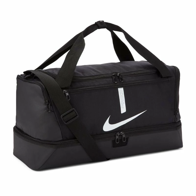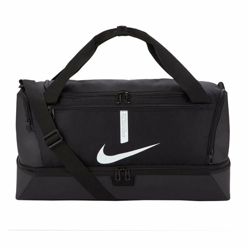The Nike Academy Team Hardcase Bag has a durable construction and keeps you organized. A reinforced bottom provides additional protection for the contents, and numerous attachments allow you to carry your football equipment in various ways.