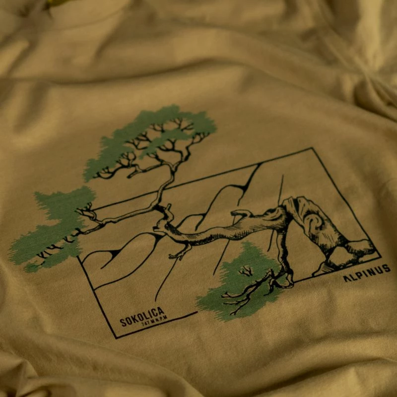 - One of them is a brown t-shirt with the image of a pine tree on top of Sokolica.