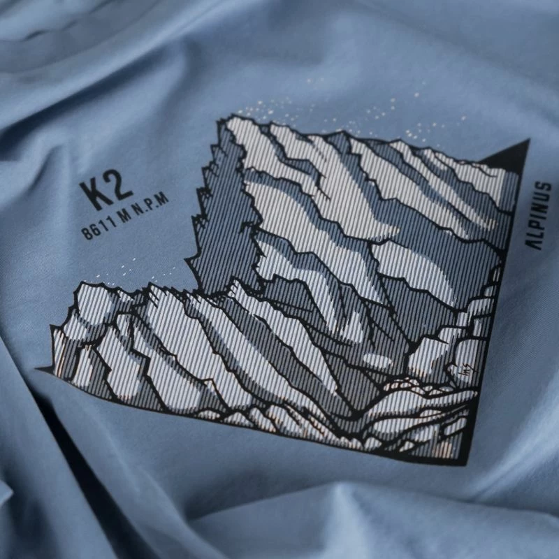 - One of them is a blue t-shirt with the image of the K2 peak, an eight-thousanders mountain located in the Karakoram, at the border of China and Pakistan.