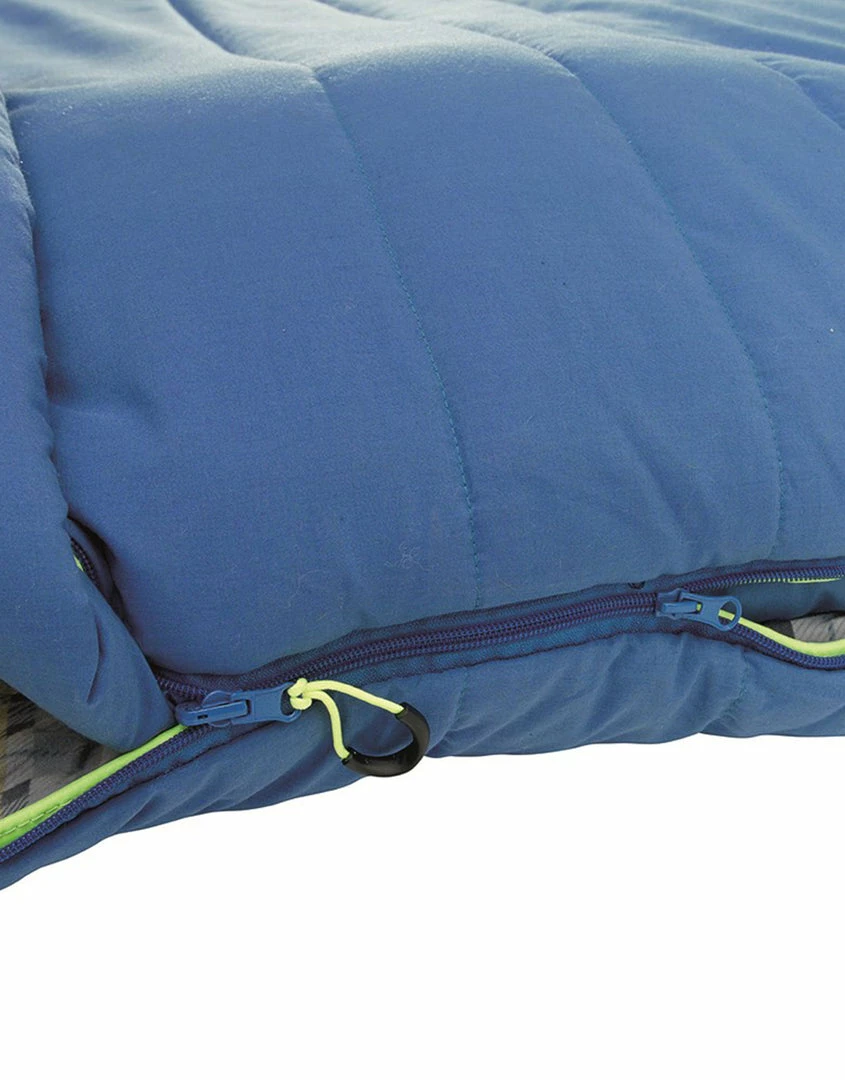 Sleep happy from early spring to late autumn with the Outwell Commodore Double sleeping bag. Extra snuggly thanks to its soft folded over lining, the sleeping bag has lots of insulation to keep you warm in chilly weather. On hotter days, simply unzip the top and bottom to let air flow from top to toe. The loose pillows can be positioned wherever you want making it easier to get comfortable.