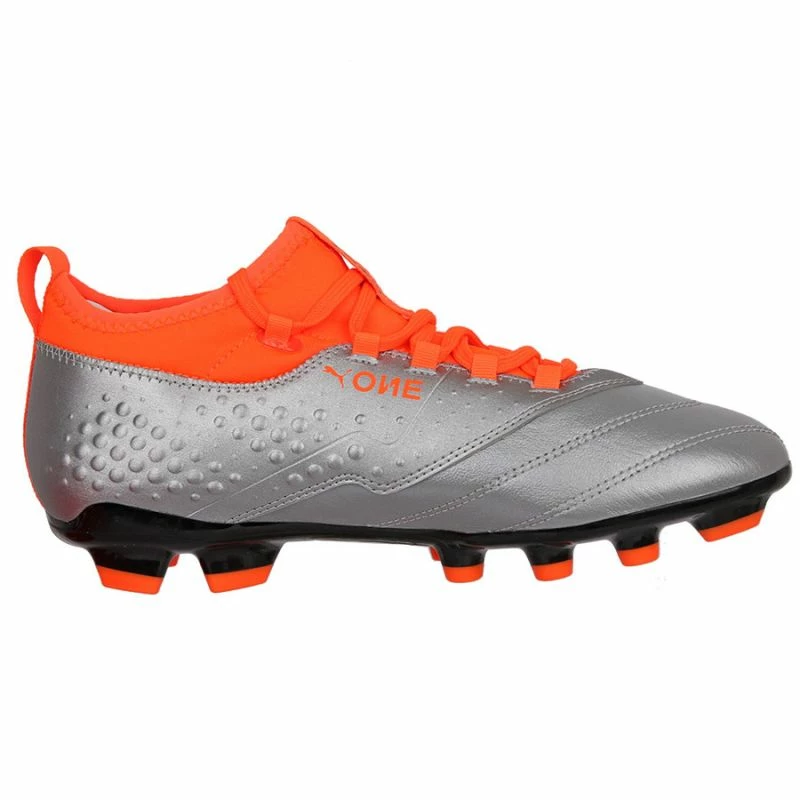 Puma Mens One 3 Lth HG Football Boots –Â Gray/Orange
