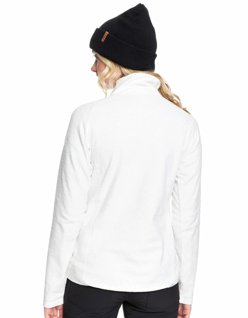 Take to the piste in the Roxy Womens Cascade Half Zip Fleece in Bright White with a subtle diamond print that will go with any ski outfit while keeping you warm out in the snow. Light and with a half zip for ventilation, this cosy fleece is perfect for active wear or après-ski relaxing.