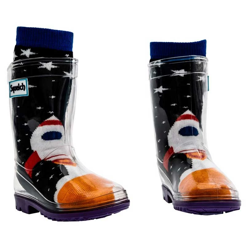 Squelch Wellies Kids Transparent Welly Boots and Sock Package – Sharks