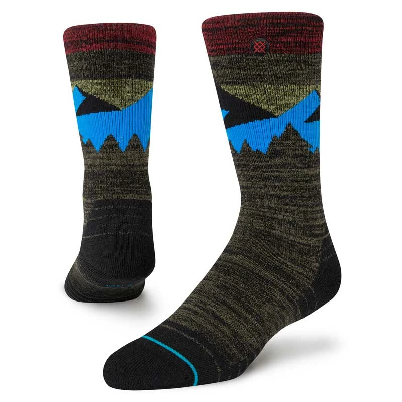 Capture the spirit of conquering the Continental Divide on your own two feet. Decorated with cobalt peaks and spun with Merino wool, these mid-calf socks are designed to keep you warm and feeling fresh. Â