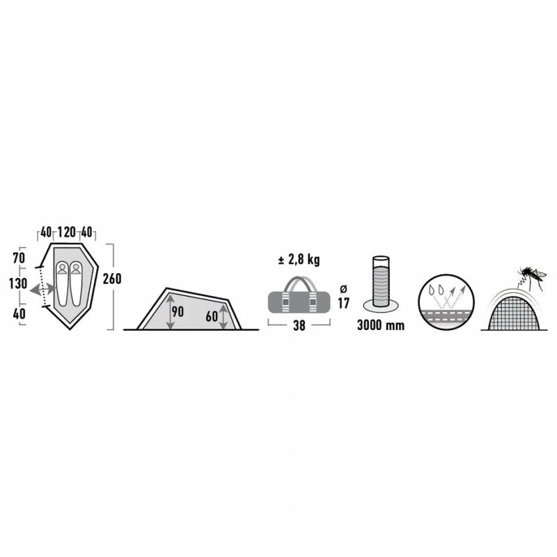 - The entrance is equipped with a mosquito net that protects against insects. Laminated seams and 3000mm water resistance guarantee very good protection against rain.