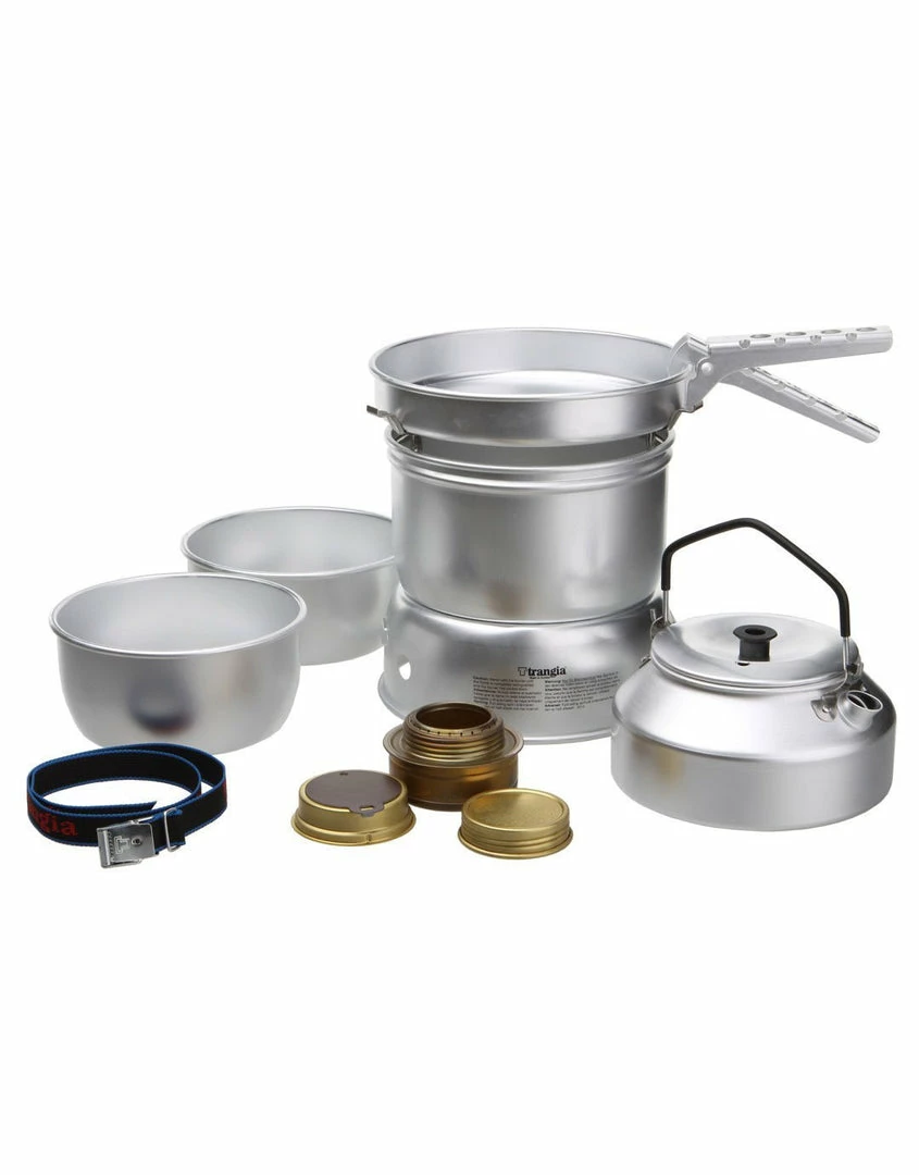 Trangia 25-2UL Stove with Kettle is a storm-proof, spirit burning, aluminium stove is ideal for three/four people. The pans and kettle are slightly larger than the 27 series. The Trangia is a light, fast and, above all, reliable stove for the outdoors, in all weathers. Two windshields that fit together, a burner, a couple of pans, a combined lid/frypan, kettle and a handle. It is lightweight, needs no special care and is hardwearing. The Trangia stove is reliable, without unnecessary parts that can go wrong or be adversely affected by cold. The stove is quick to set up, and packs into a compact unit that takes up minimal space.