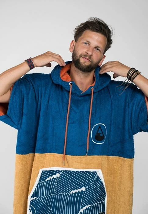 Cozy poncho in size L made of super fluffy material with 60% viscose made of bamboo fiber and 40% cotton, which is certified according to Oeko Tex Standard 100. Pleasant on the skin and functional as usual. Two-layer, particularly warm hood with high collar, cord and metal eyelets. The large front pocket offers space for utensils such as shampoo or brush or your cold hands. A real eye-catcher. The carefully selected fabrics are particularly fluffy and skin-friendly. Sustainability and naturalness in the selection of raw materials play a major role for us – not just for the sake of your skin. Whether after showering – during sports and at home, in the leisure pool, in the thermal baths, during water sports, in the sauna, in the fitness studio, while camping, etc. Your poncho always keeps you nice and warm, does not leave you standing in the wet and keeps you as mobile changing room when changing from prying eyes. Easy to care for, machine washable and suitable for tumble drying.