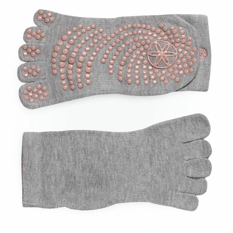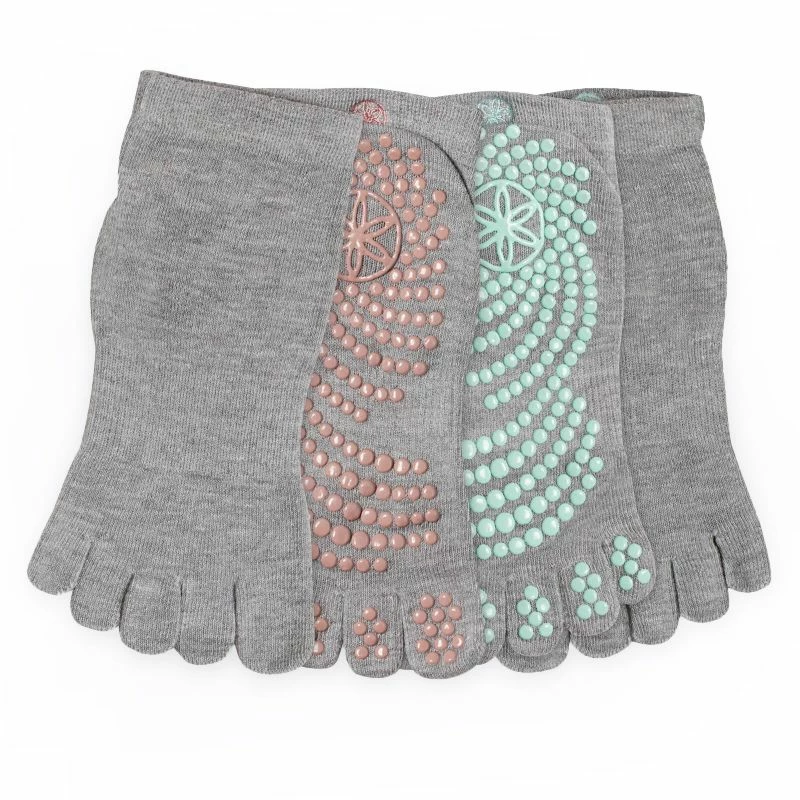 - ย No mat? No problem. Thanks to the non-slip yoga socks, you can practice anywhere. Designed to be used with or without a mat, these comfortable socks increase stability, traction and balance.