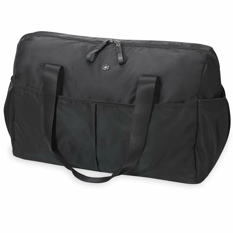 - Â One bag that fits everything? Here you are! The classic style of the Gaiam Bag means it can be taken anywhere – to the yoga studio, on the street and wherever life takes you. Made of durable, structured nylon, it has exterior straps to secure your mat, exterior pockets for quick access to your phone or water bottle, a large zip fastener for easy packing, and a spacious interior for all your gear.
